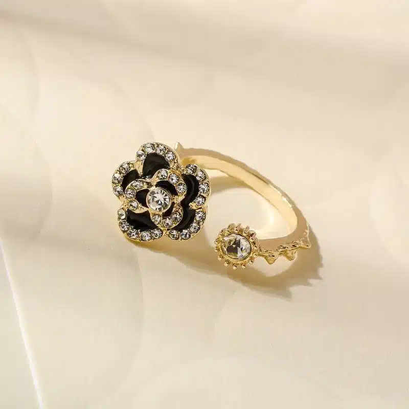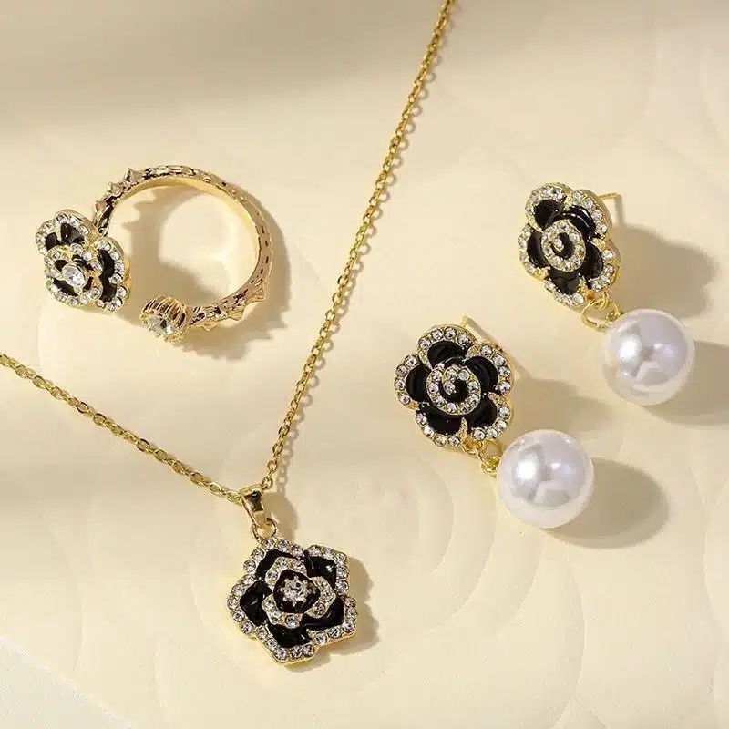 4-Piece Black Floral Jewelry Set for Women | Necklace, Earrings & Ring | Fashionable & Personalized Design